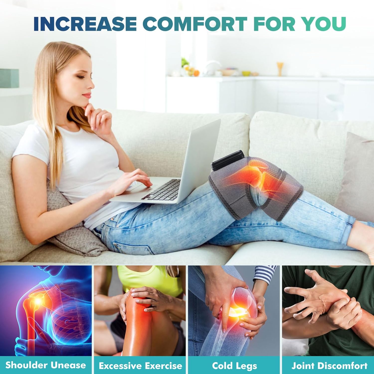 Alivia el dolor en minutos con calor terapéutico, vibración profunda y compresión inteligente… ¡Todo en un solo dispositivo y totalmente inalámbrico! 🔋🔥